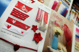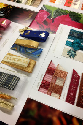 Als jährliches Highlight werden die Neuheiten der Textilbänder im Trendbook zusammengefasst. Druckmotive, gewobene und klassische Bänder bilden zu gewählten Themen eine Einheit.
